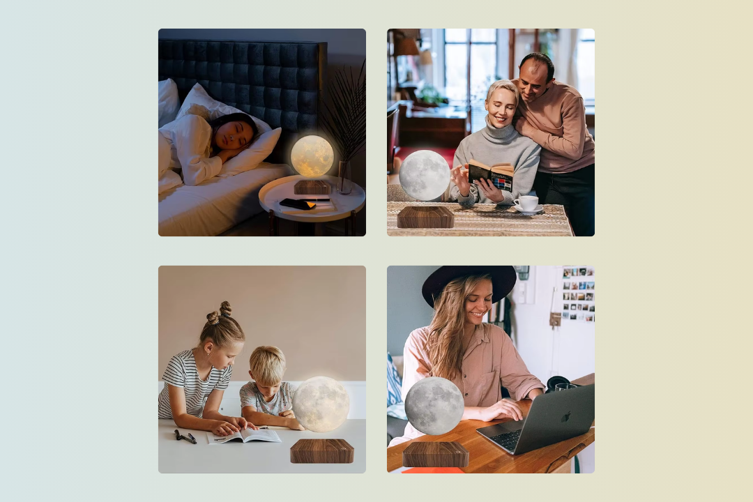 Bring Schwerelosigkeit direkt in dein Leben - im wahrsten Sinne. Schaffe ein einzigartiges Ambiente, das den Zauber des Mondes widerspiegelt. Während viele Lampen auf dem Markt lediglich ihre optische Wirkung vorgeben, gehen wir den Schritt weiter. SkyGleam vereint innovative Magnetschwebetechnologie und atemberaubende 3D-Drucktechnik, um dir eine authentische Nachbildung des Mondes zu bieten. Unser Fokus auf Design und Funktionalität hebt uns ab.